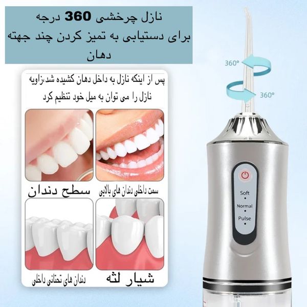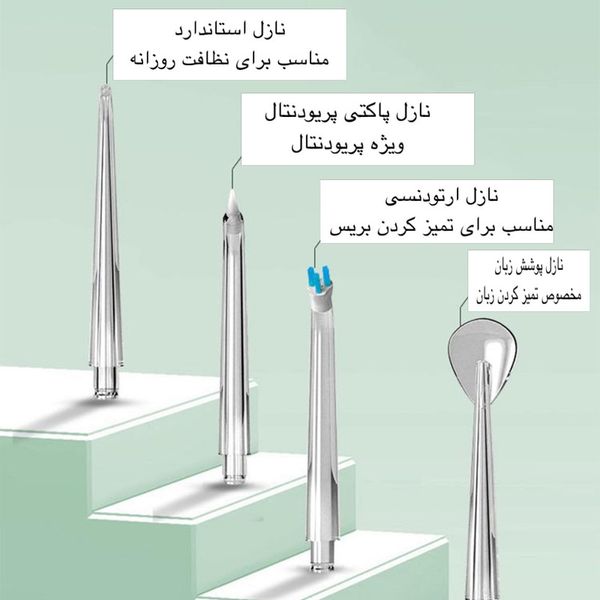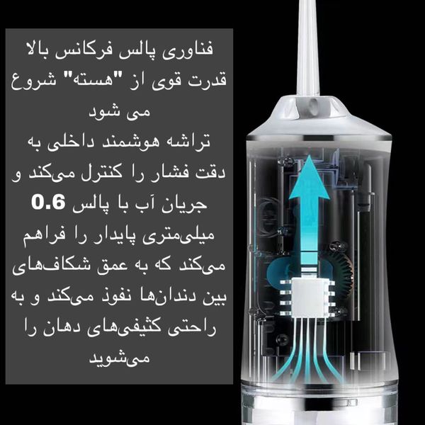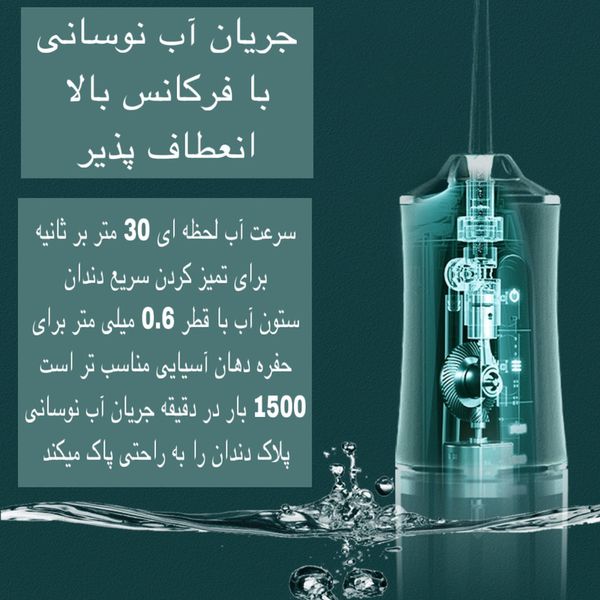 - 💦 مخزن آب بزرگ:ظرفیت بالا برای استفاده کامل بدون نیاز به پر کردن مکرر در هر بار شستوشوی دهان.